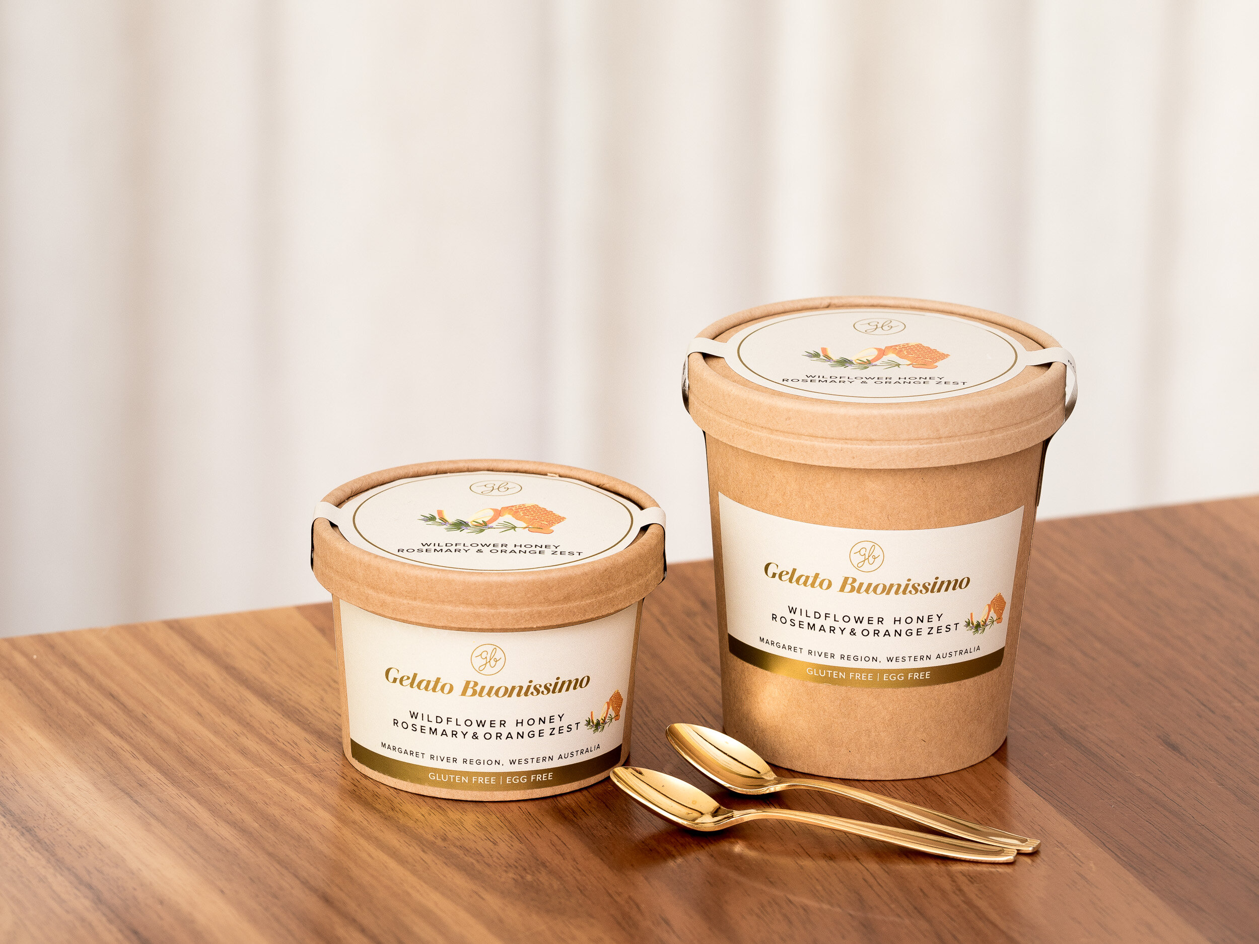 WILDFLOWER HONEY ROSEMARY & ORANGE ZEST | Creamy secret dairy base gelato with balanced hint of rosemary, orange zest and local WA wildflower honey. GLUTEN FREE, EGG FREE